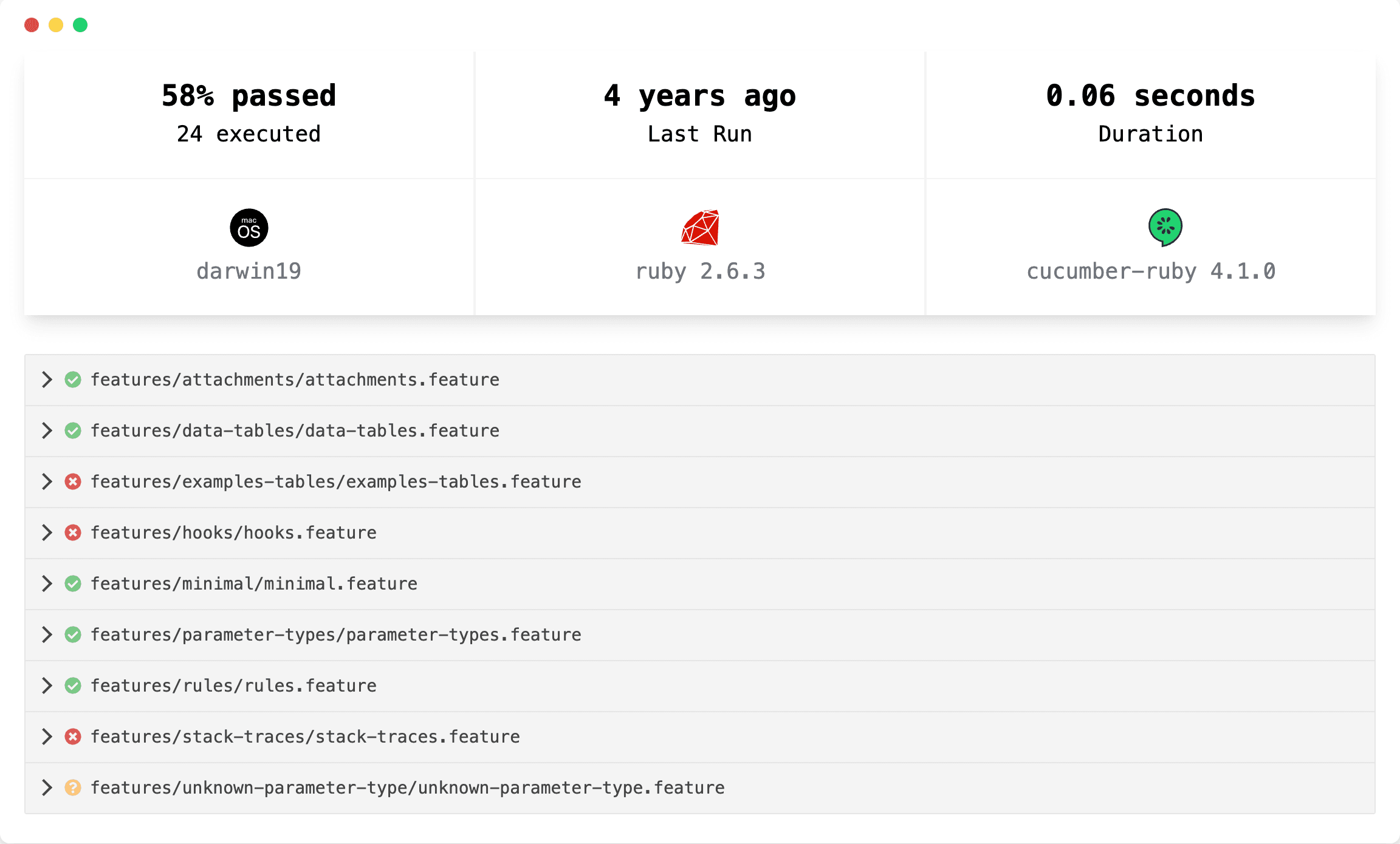 ProductfeaturesTicket SystemTicketticket-reportsBdd Testing ReportBDD testing report Cucumber, Gherking Cucumber.js (opens in a new tab) github cucumber-js (opens in a new tab) gherking docs (opens in a new tab) TicketCode